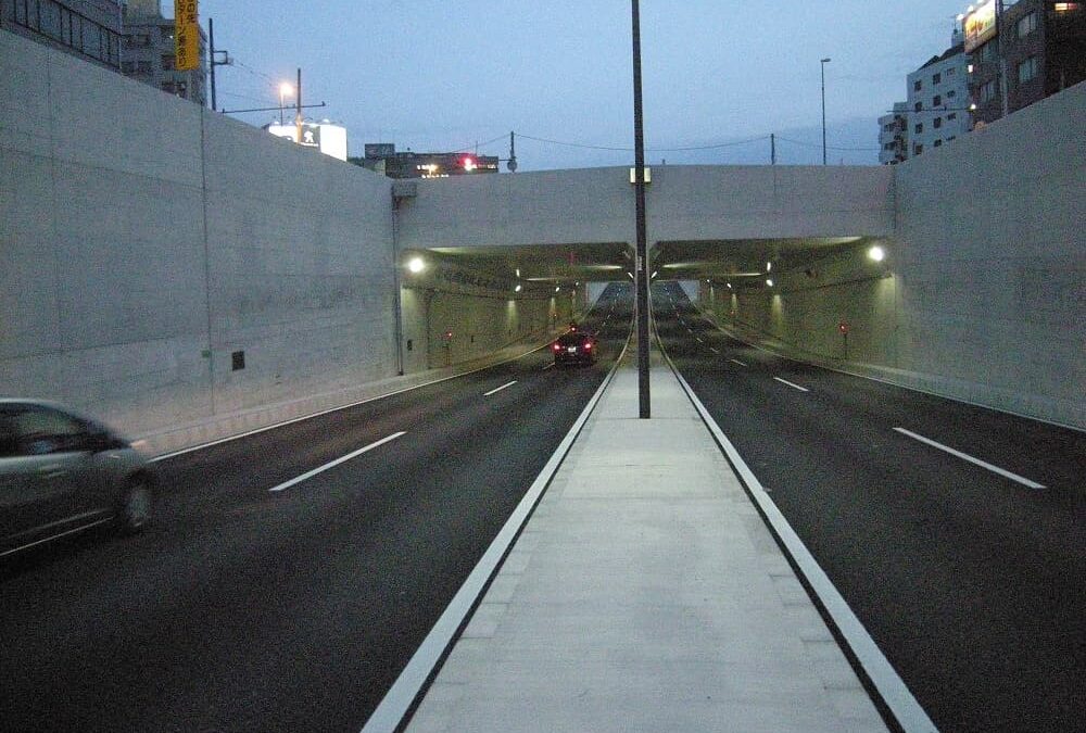階段段鼻部に配置されたアルシオール ラインと踏み面部のダークグレー色アンプロップとの輝度比が1日中を通して常時3以上あるため、昼夜を問わず踏み外し転倒事故を未然に防ぎます。