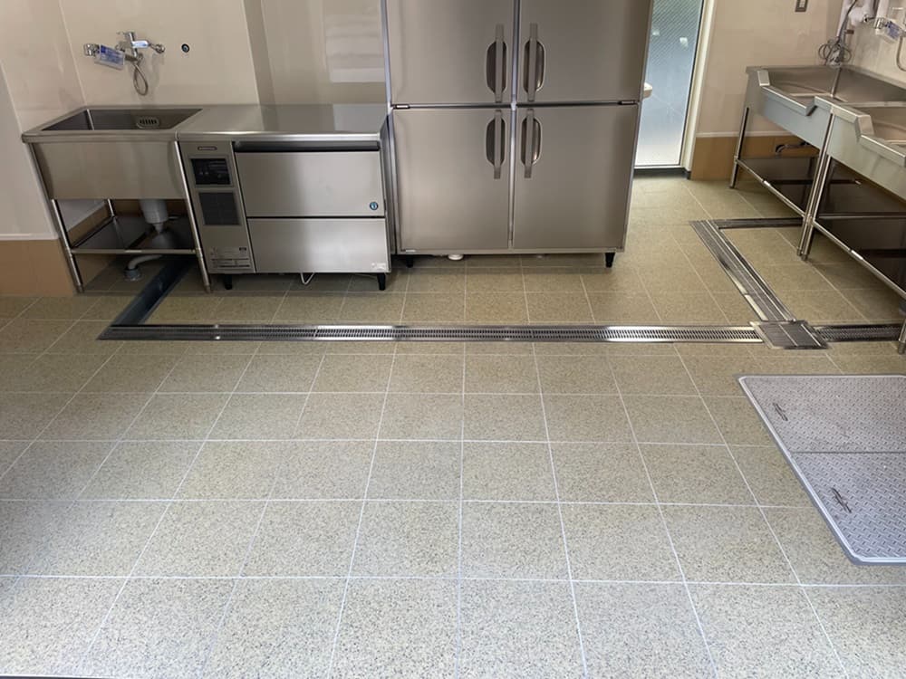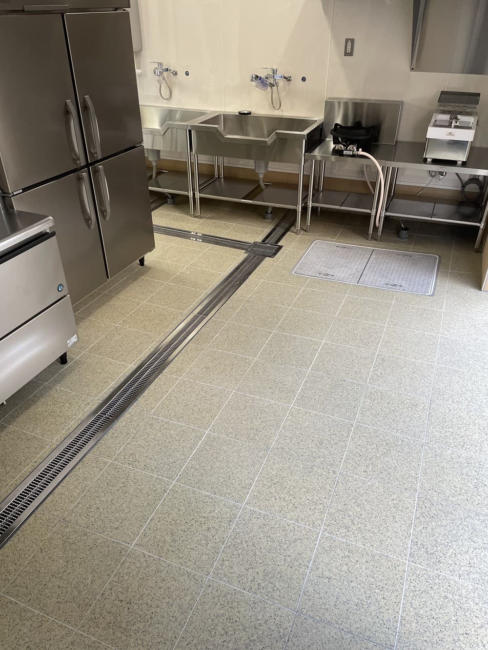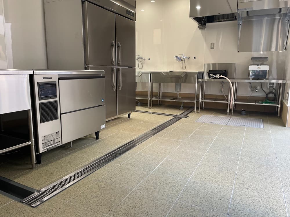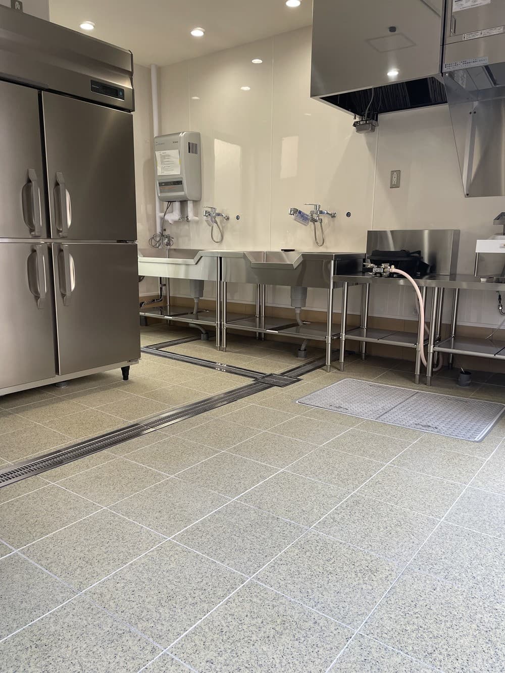 - アンプロップ ハードタイプ 300角 イエローをテイクアウト専門のお刺身屋さんの厨房に設置