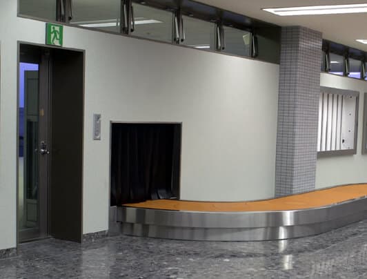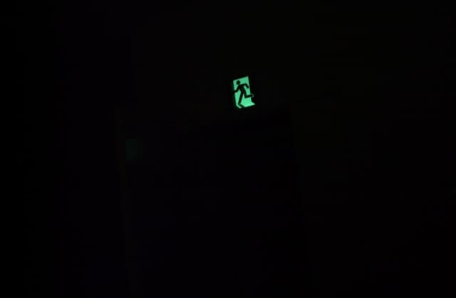 深夜、ターミナルビルを閉館し、照明を全消灯しての目視検査でアルシオール 高輝度蓄光式誘導標識が、設置当初と同様の発光性能/視認性を得られることが確認されました。