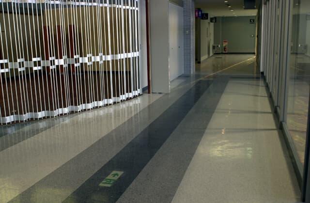 アルシオール 高輝度蓄光式誘導標識が毎日多数の利用客が通行するターミナルビルにおいて火災避難時の基本である床誘導を行うことで、より安全/安心な避難誘導に貢献します。